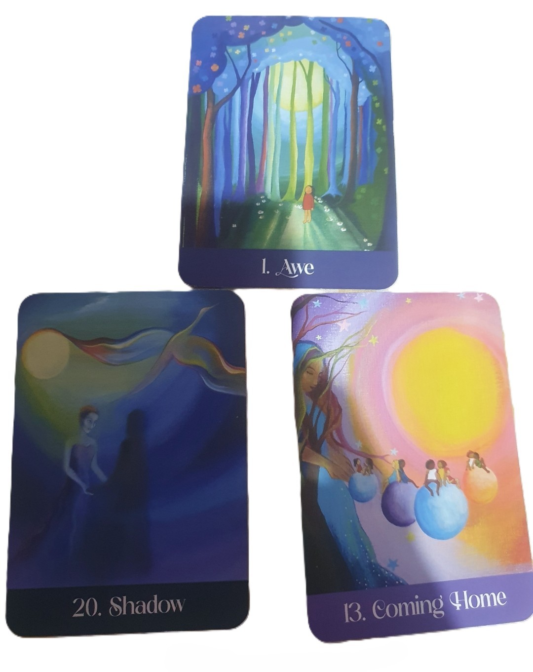 Each card is carefully designed with specific colours and symbols, representing different aspects of life, such as love, joy, balance, and clarity.